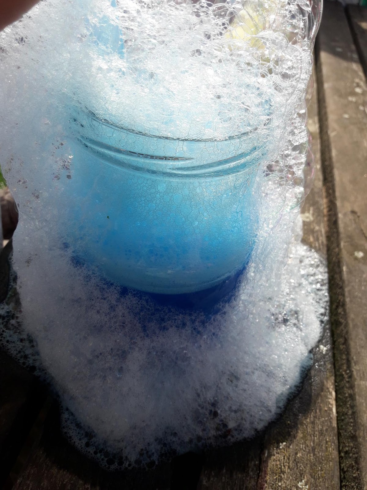 Spännande tyckte barnen att det var för ju mer man blåste i sugröret ju mer bubblor blev det...